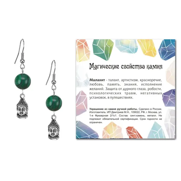 Серьги Будда (защита, духовное развитие), Малахит SEB07-15-2074