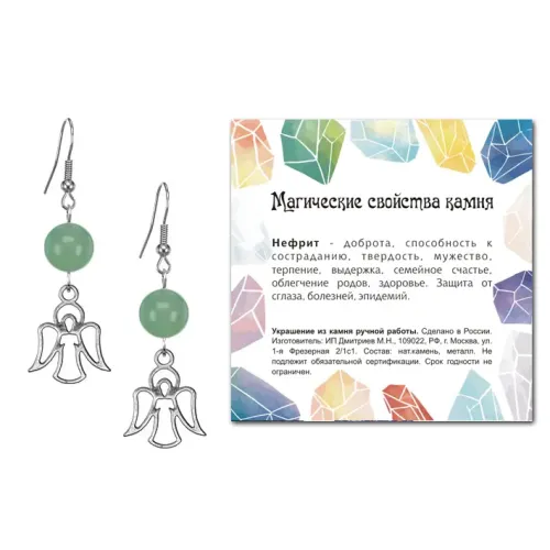 Серьги Ангел-хранитель (помощь и защита), Нефрит SEB07-16-05