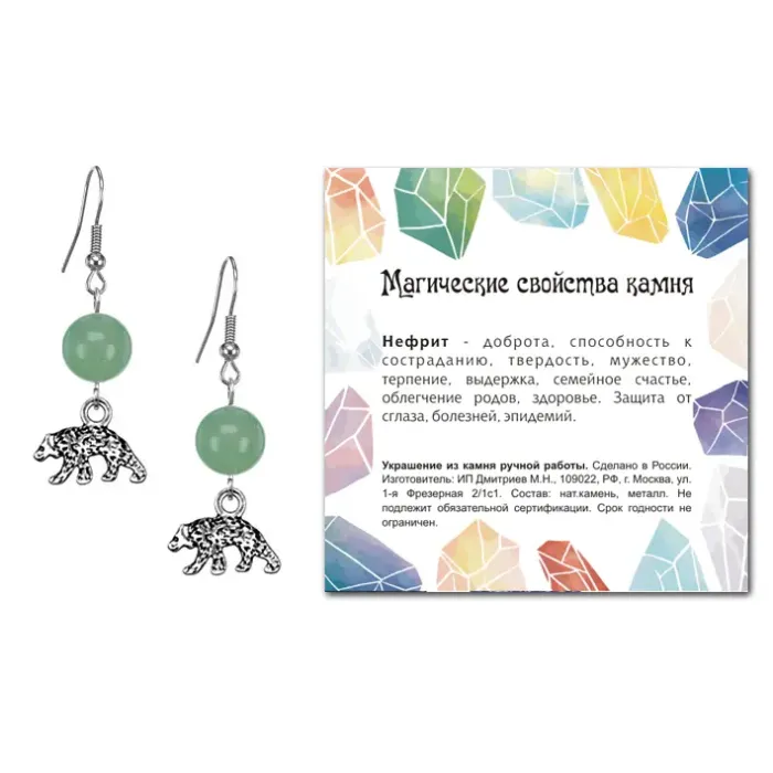 Серьги Медведь (защита, сила, победа), Нефрит SEB07-16-19