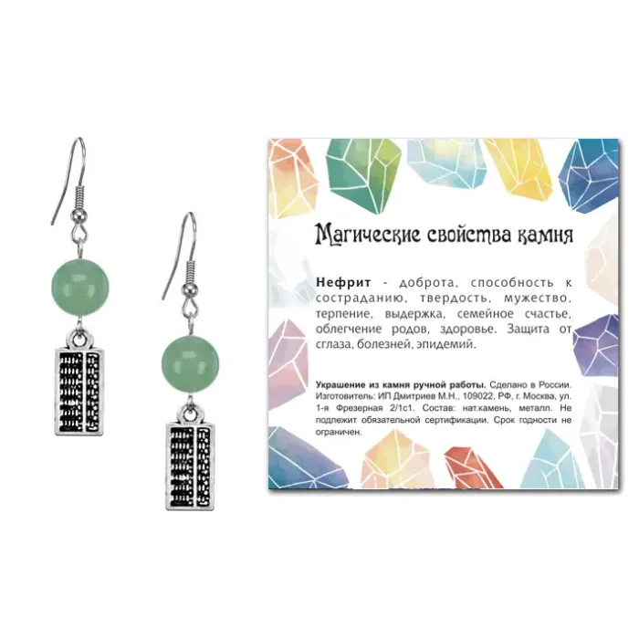 Серьги Счеты (богатство), Нефрит SEB07-16-21