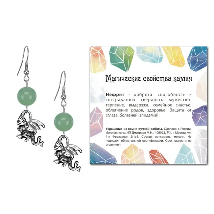 Эти серьги не только подчеркнут индивидуальность стиля, но и привнесут в жизнь позитивную энергетику нефрита.