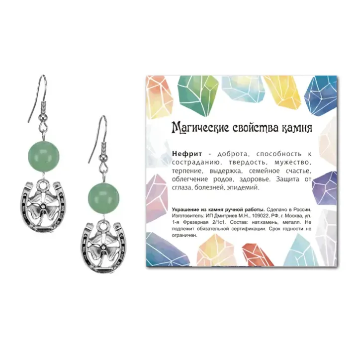 Серьги-амулеты из коллекции MAGIC CRISTALS 2 с натуральным камнем Нефрит. Эти украшения символизируют счастье и удачу, что делает их идеальным подарком для близких или для себя.
