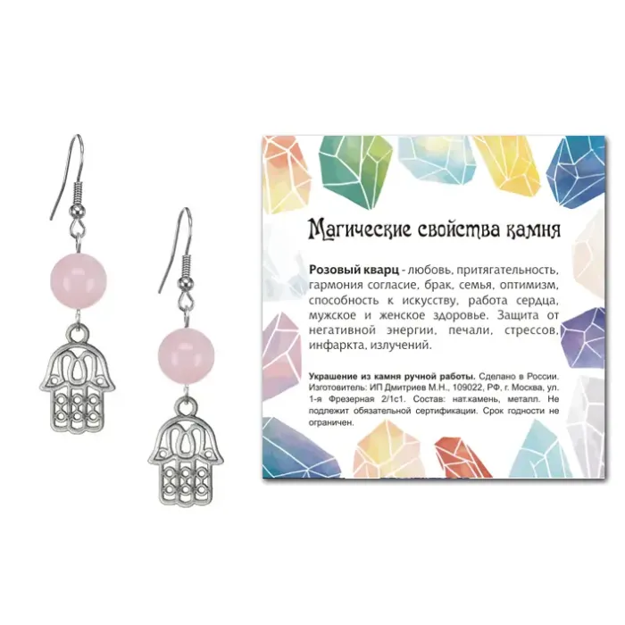 - Каждая пара упакована в прозрачный пакет с подвесом и включает вкладыш с описанием значения камня, что делает их отличным подарком или сувениром.