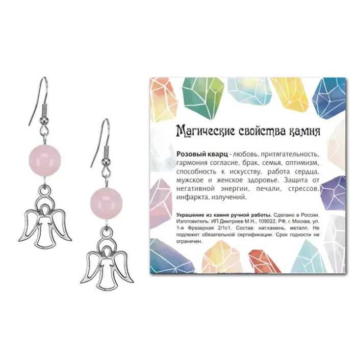 Серьги Ангел-хранитель (помощь и защита), Розовый кварц SEB07-17-05