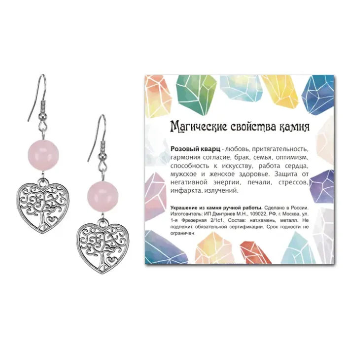 4. Каждая пара упакована в прозрачный пакет с подвесом и комплектуется вкладышем с описанием значения камня, что делает серьги отличным выбором для подарка.