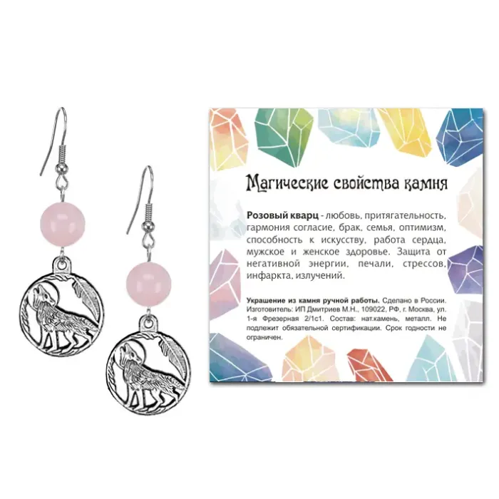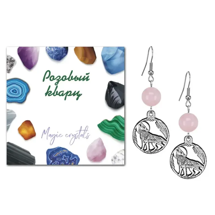 Серьги Волк (защита, сила, победа), Розовый кварц SEB07-17-07