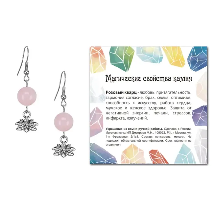 Серьги-амулеты коллекции MAGIC CRISTALS 2 с натуральным камнем Розовый кварц, символизирующим гармонию и любовь. Эти изящные серьги не только дополняют образ, но и приносят позитивную энергетику в повседневную жизнь.