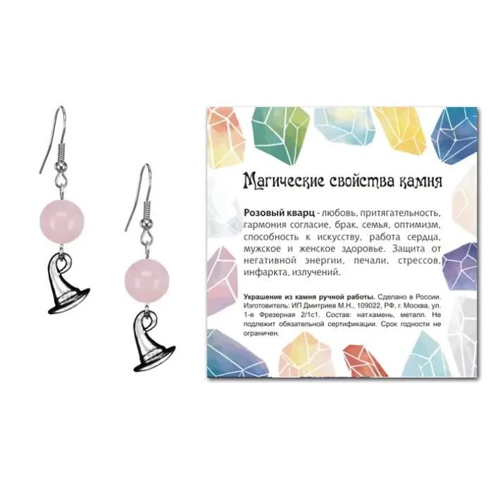 Серьги Волшебная шляпа (магический дар), Розовый кварц SEB07-17-20