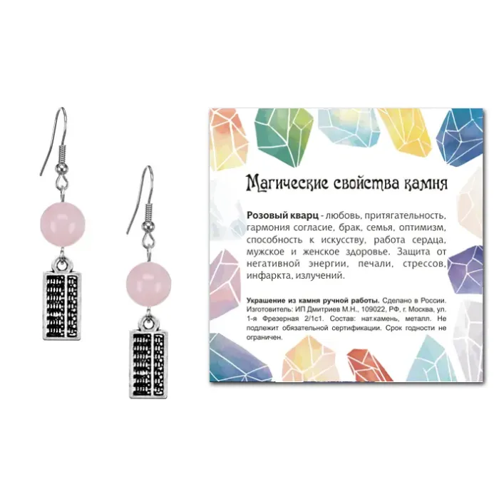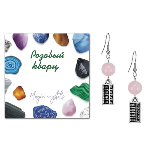 Серьги Счеты (богатство), Розовый кварц SEB07-17-21