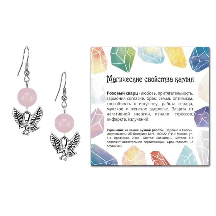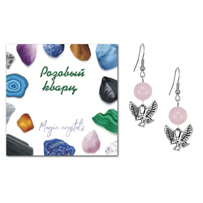 Серьги Орел (защита, сила, победа), Розовый кварц SEB07-17-24