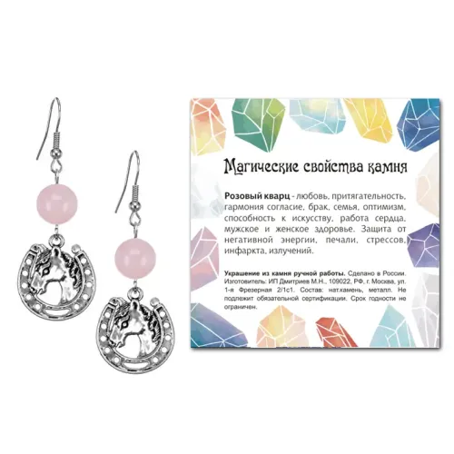 Серьги Подкова (счастье), Розовый кварц SEB07-17-31
