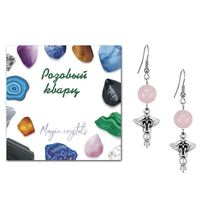 Серьги Кадуцей (здоровье, бизнес, гармония), Розовый кварц SEB07-17-33