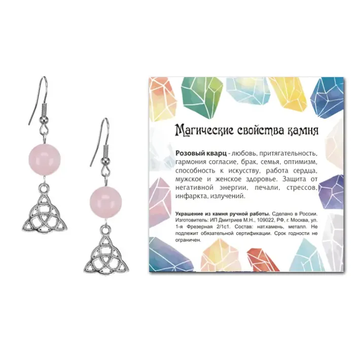 Серьги Трикветр (защита и гармония), Розовый кварц SEB07-17-0069