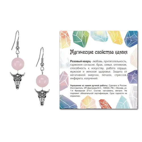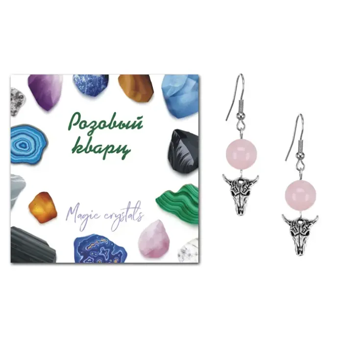 Серьги Череп быка (сила, мужество, защита), Розовый кварц SEB07-17-2076