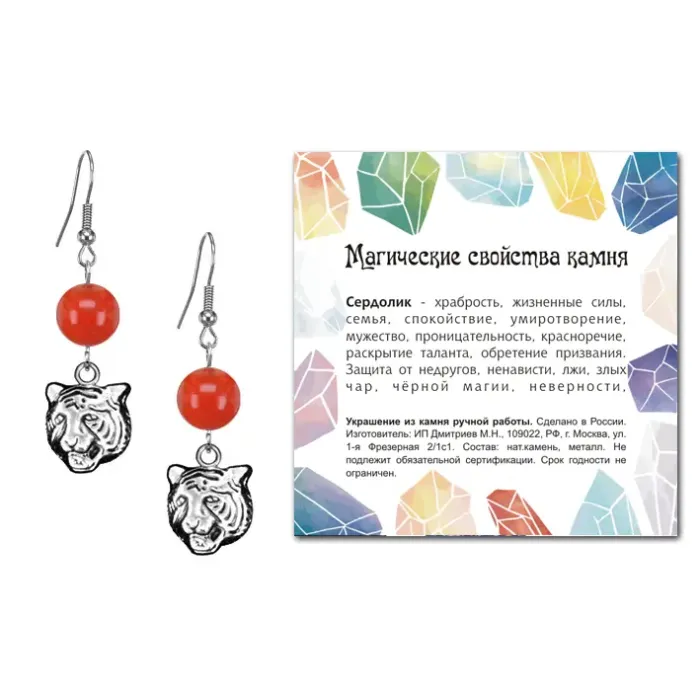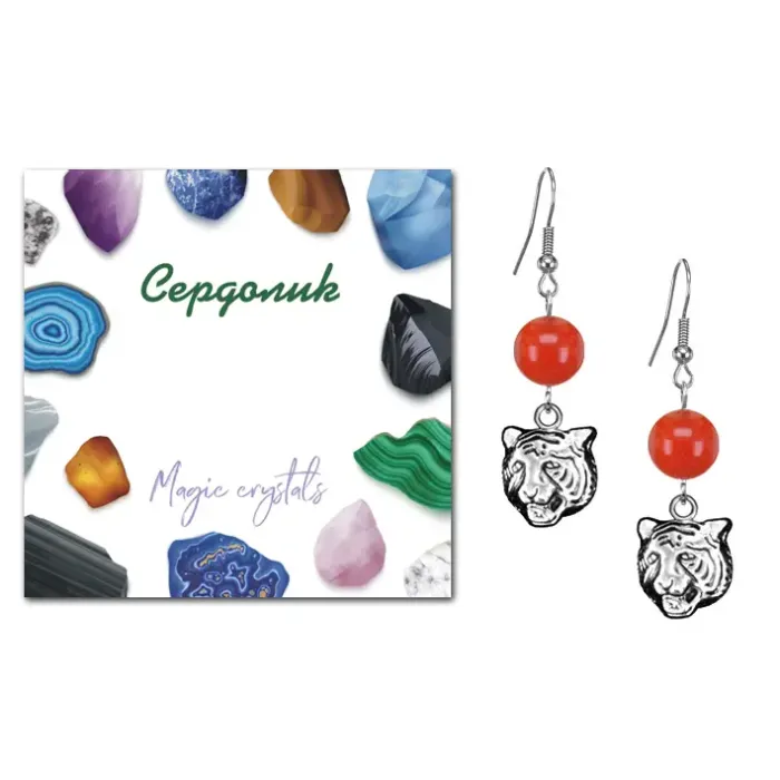 Серьги Тигр (защита, сила, победа), Сердолик SEB07-18-10