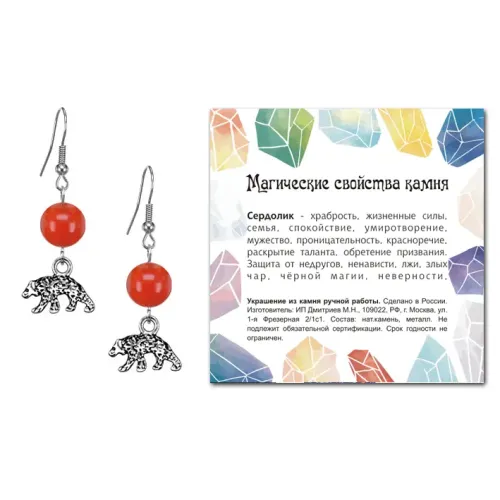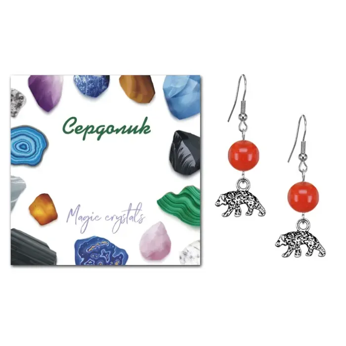 Серьги Медведь (защита, сила, победа), Сердолик SEB07-18-19