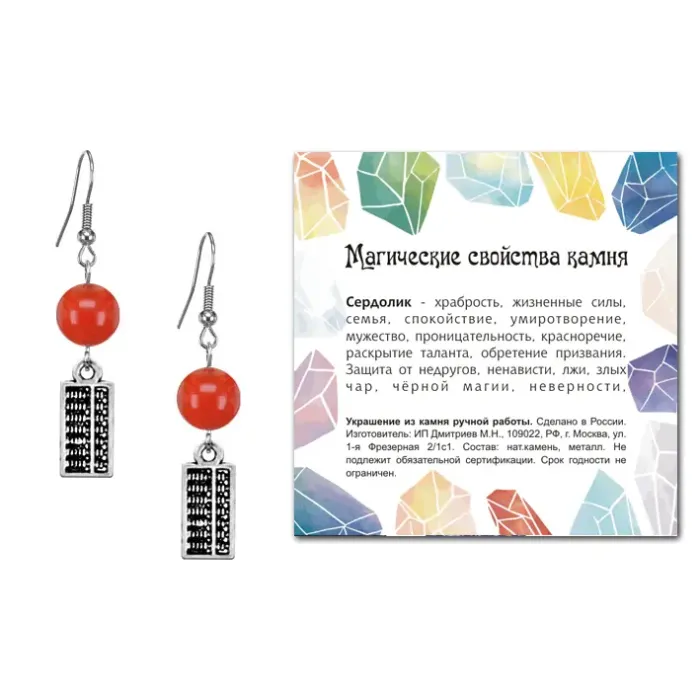 Серьги Счеты (богатство), Сердолик SEB07-18-21