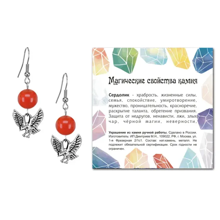 Серьги Орел (защита, сила, победа), Сердолик SEB07-18-24