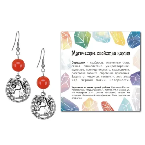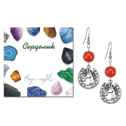 Серьги Подкова (счастье), Сердолик SEB07-18-31
