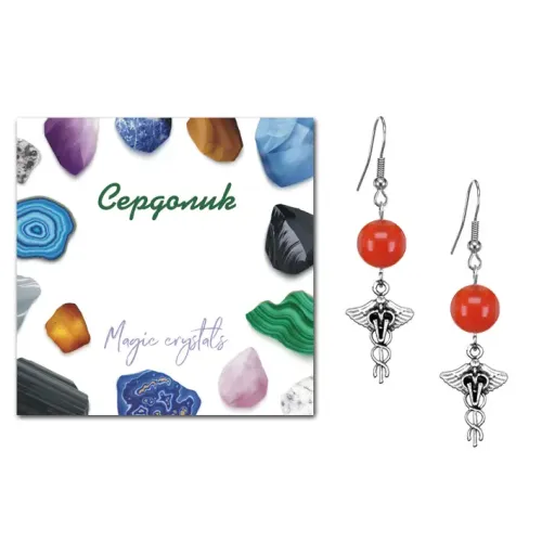 Серьги Кадуцей (здоровье, бизнес, гармония), Сердолик SEB07-18-33