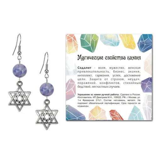 Серьги Звезда Давида (от сглаза и зла), Содалит SEB07-19-02