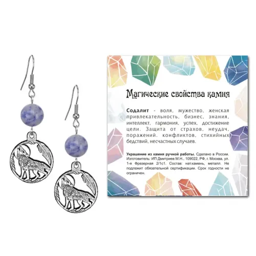 Серьги Волк (защита, сила, победа), Содалит SEB07-19-07