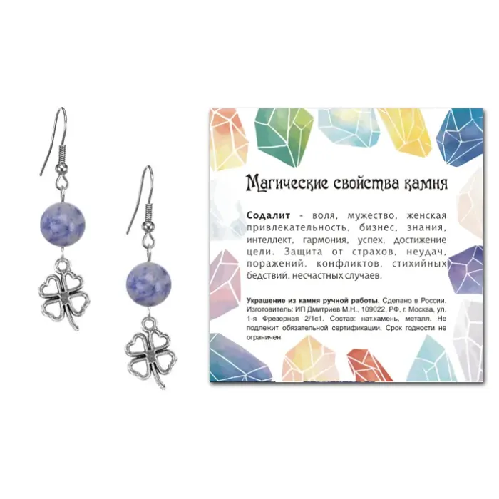 Серьги-амулеты из коллекции MAGIC CRISTALS 2 с натуральным камнем Содалит — символом удачи и везения. Эти стильные серьги не только дополнят любой образ, но и станут настоящим талисманом.