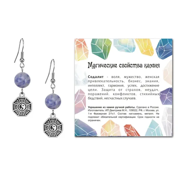 Серьги Багуа (защита от негативной энергии), Содалит SEB07-19-34