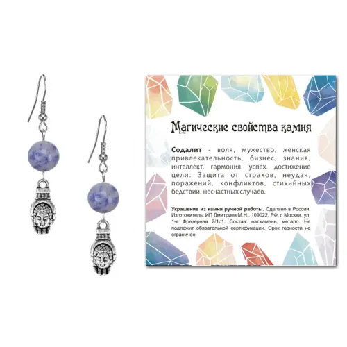 Серьги Рука Будды (защита, духовное развитие), Содалит SEB07-19-2056
