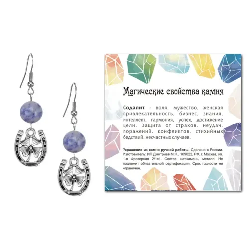 Серьги Подкова и клевер (счастье и удача), Содалит SEB07-19-P001