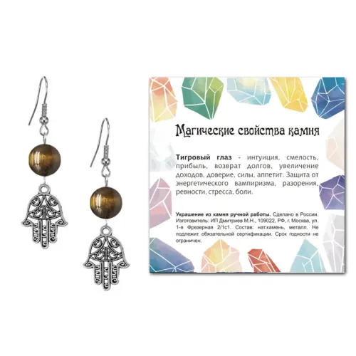 Серьги Хамса (от сглаза и зла), Тигровый глаз SEB07-20-0001