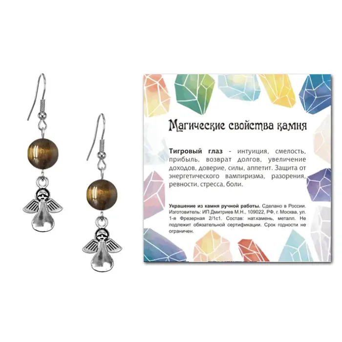 Серьги Ангел-хранитель — это стильные серьги-амулеты из коллекции MAGIC CRISTALS 2, которые не только дополнят любой образ, но и привнесут в него защитную энергетику. Изготовленные с использованием натурального камня Тигровый глаз, эти серьги традиционно ценятся за свою способность оберегать от негативных влияний.