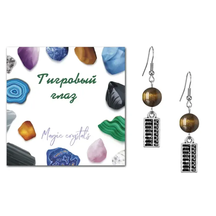 Серьги-амулеты коллекции MAGIC CRISTALS 2 с натуральным камнем Тигровый глаз символизируют богатство и удачу. Эти стильные серьги идеально подойдут для создания уникального образа и добавят нотку мистики в повседневный стиль.