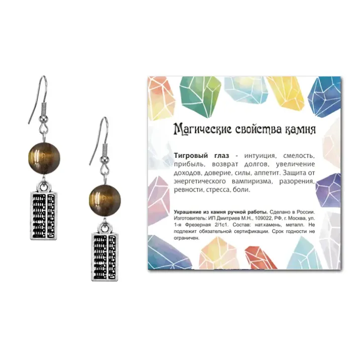 Серьги Счеты (богатство), Тигровый глаз SEB07-20-21