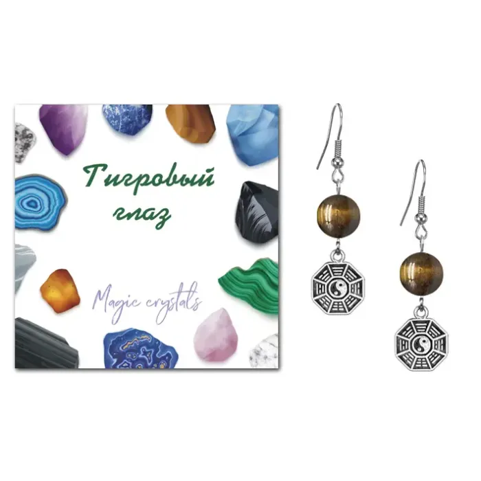 Серьги Багуа (защита от негативной энергии), Тигровый глаз SEB07-20-34