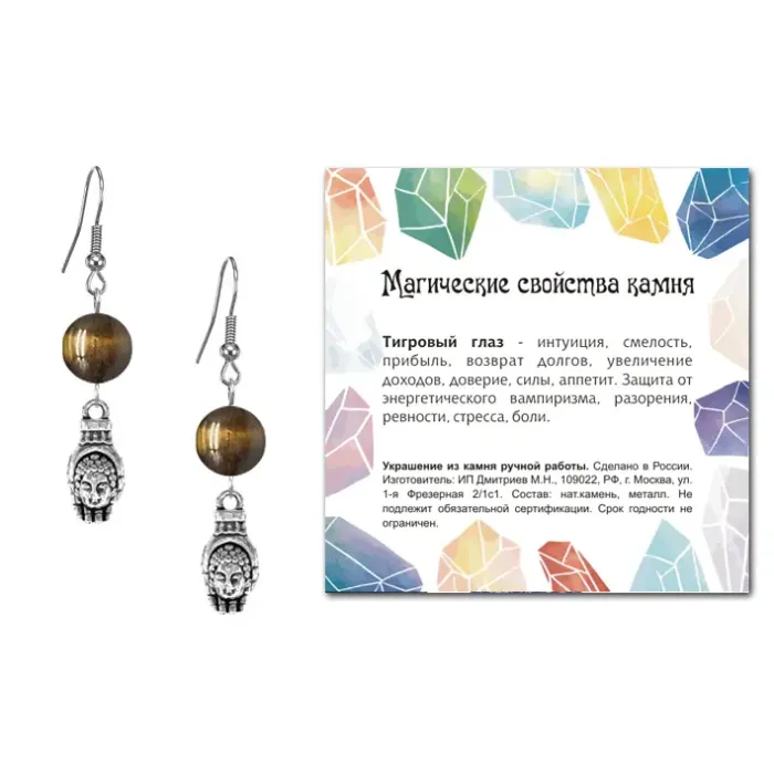 - Упаковка включает прозрачный пакет с подвесом и вкладыш с описанием значения камня, что делает эти серьги отличным подарком или сувениром.