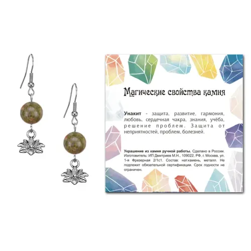 Серьги-амулеты коллекции MAGIC CRISTALS 2, выполненные из натурального камня Унакит, являются символом гармонии и развития. Эти стильные аксессуары подойдут как для повседневной носки, так и для особых случаев.