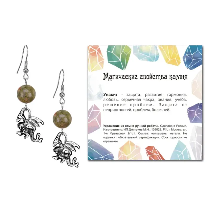 Серьги Дракон (удача, могущество, успех), Унакит SEB07-21-25