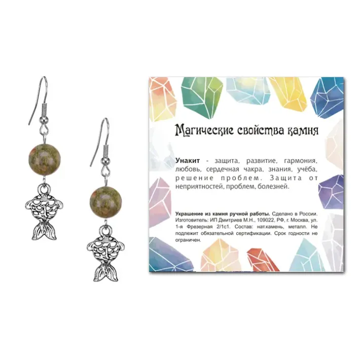 Серьги Золотая рыбка (исполнение желаний), Унакит SEB07-21-27