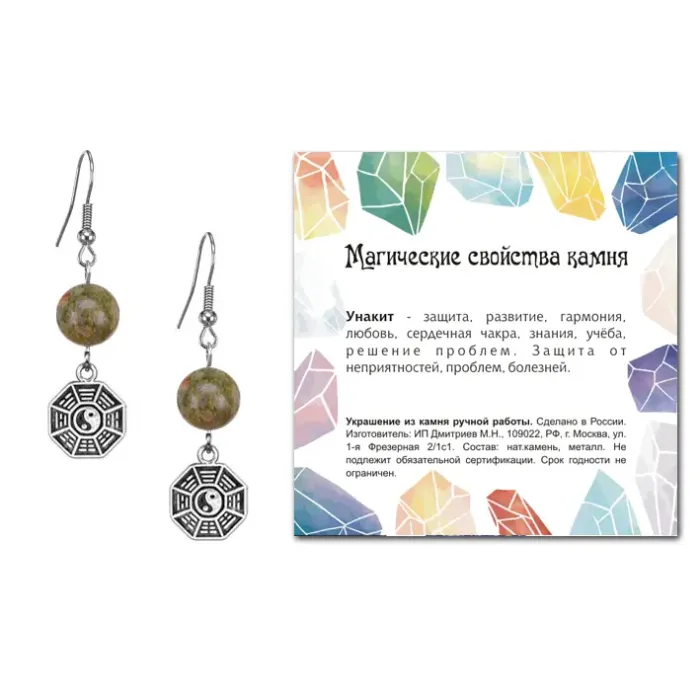 Серьги Багуа (защита от негативной энергии), Унакит SEB07-21-34