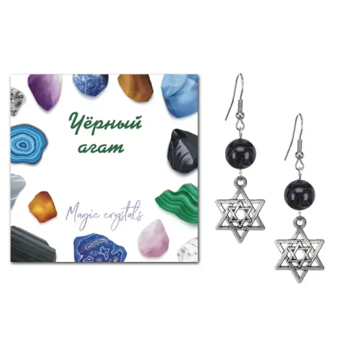 Серьги Звезда Давида (от сглаза и зла), Черный агат SEB07-22-02