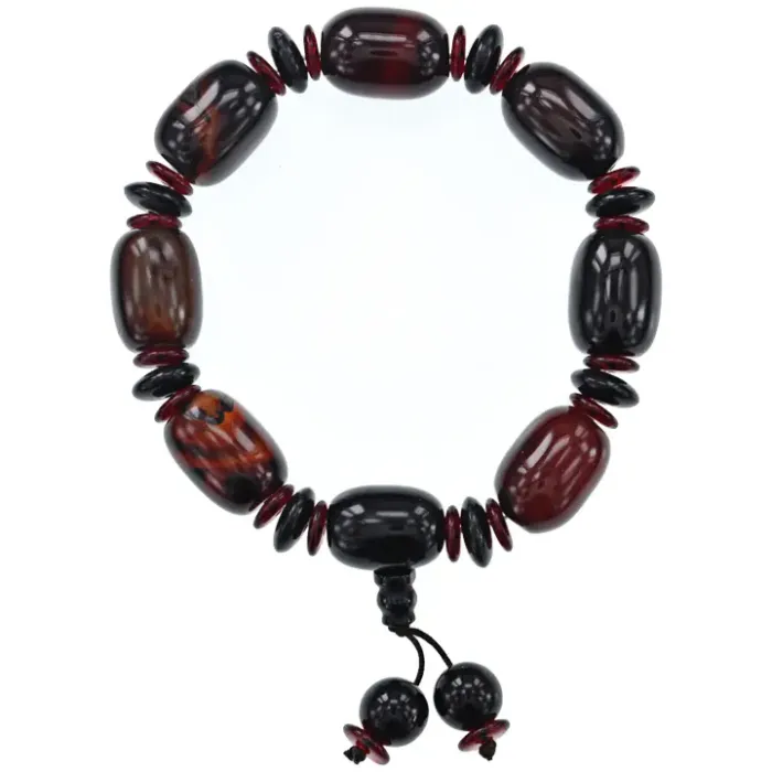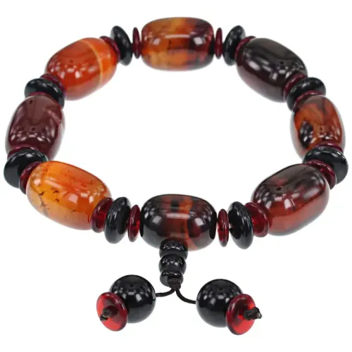 Чётки-браслет из натурального агата с Гуру-бусиной. Ширина изделия составляет около 1,5 см.