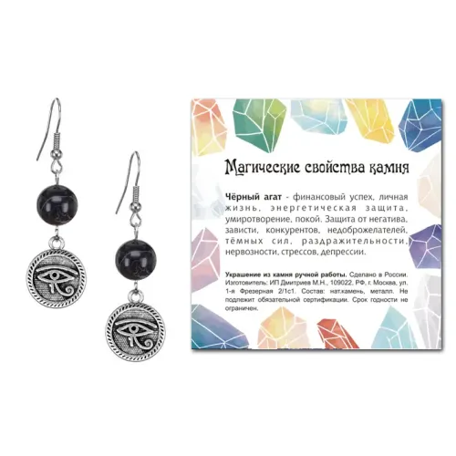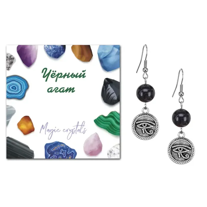 Серьги Око Ра (дар предвидения), Черный агат SEB07-22-09
