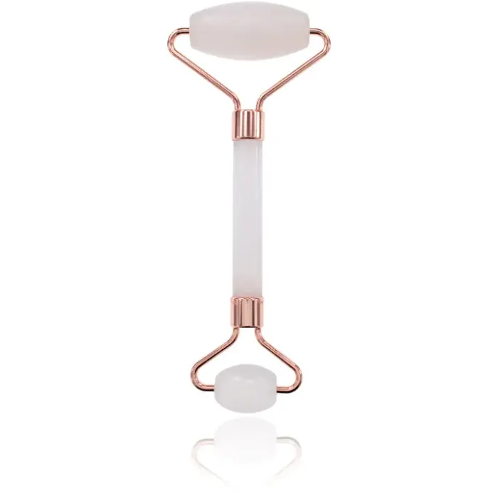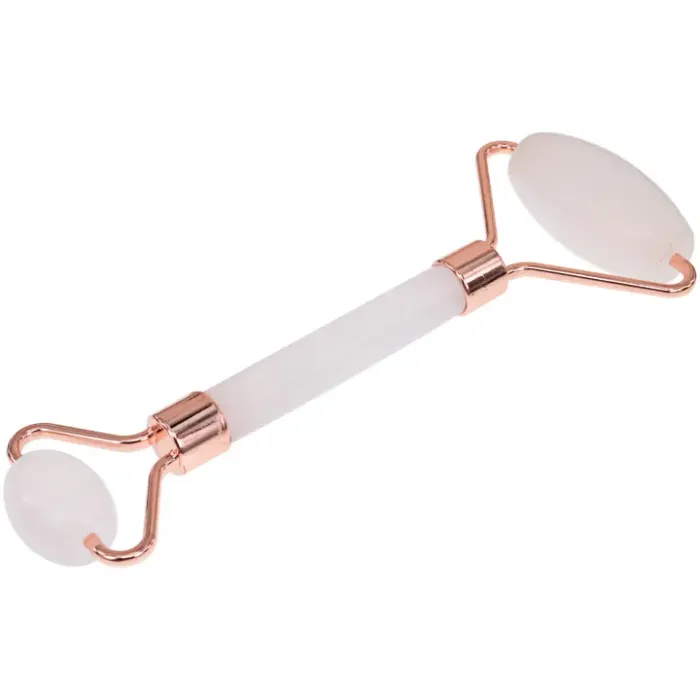 Двойной массажёр-валик из розового кварца для ухода за кожей.