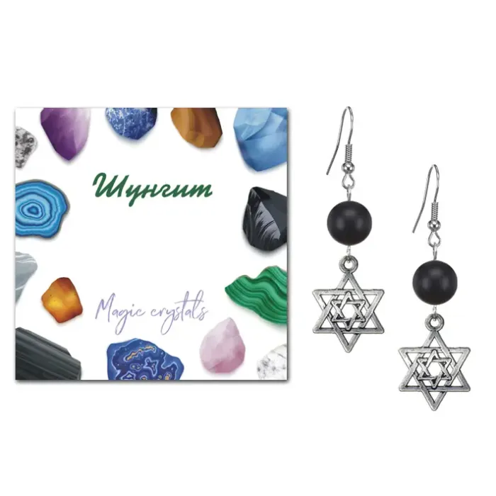 Серьги Звезда Давида (от сглаза и зла), Шунгит SEB07-23-02