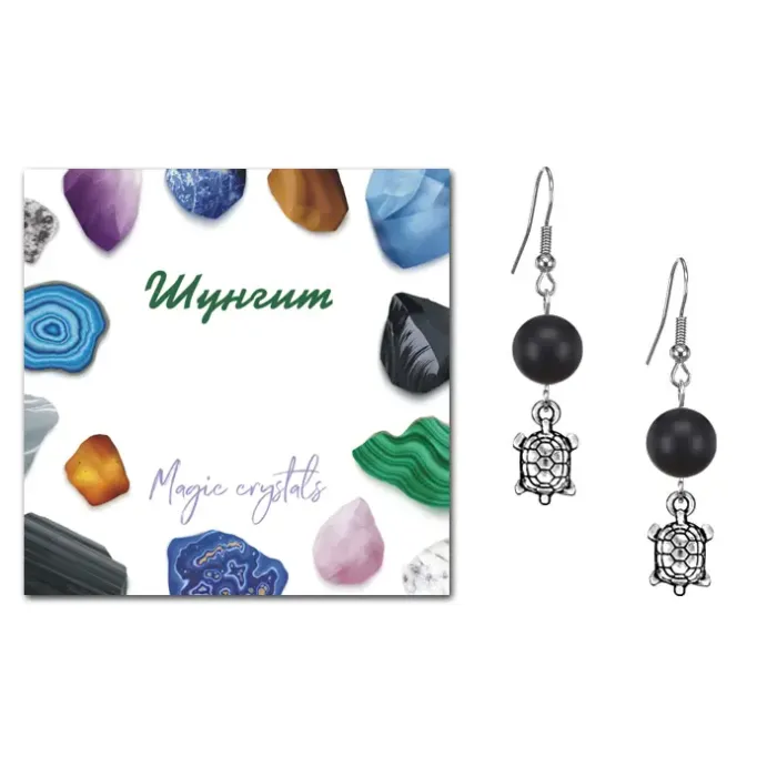 Серьги Черепаха (здоровье и долголетие), Шунгит SEB07-23-16