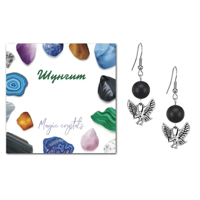 Серьги Орел (защита, сила, победа), Шунгит SEB07-23-24