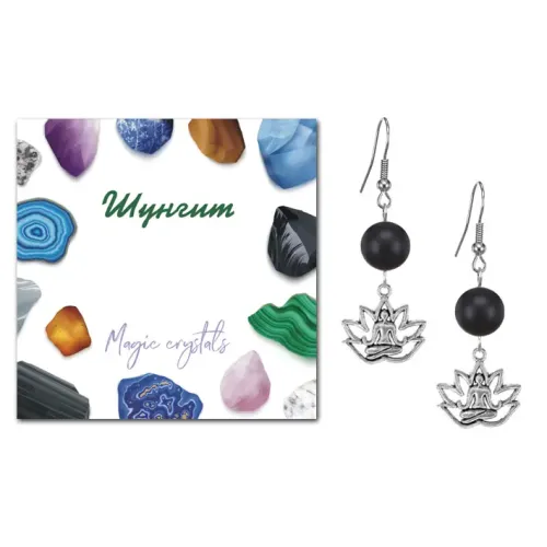 Серьги Лотос (гармония и развитие), Шунгит SEB07-23-2064