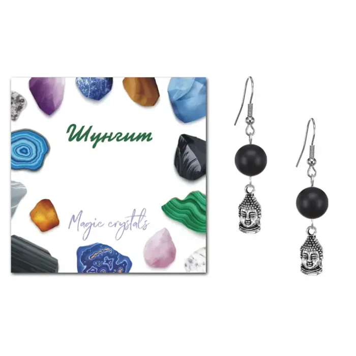 Серьги Будда (защита, духовное развитие), Шунгит SEB07-23-2074