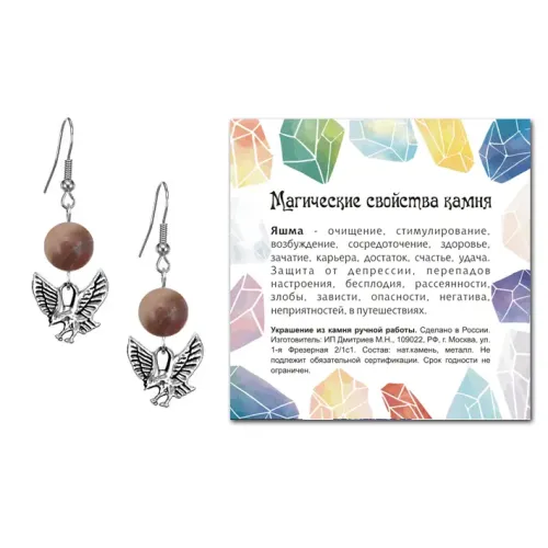 Серьги Орел (защита, сила, победа), Яшма коричневая SEB07-24-24